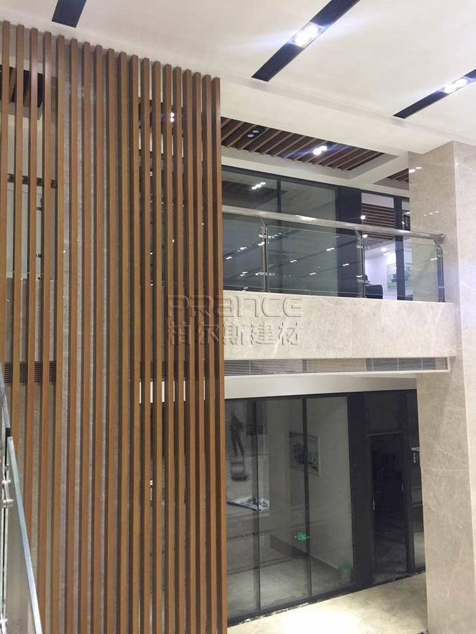 為協(xié)調(diào)整個辦公樓的裝飾風(fēng)格,柏爾斯建材建議在一二層的樓梯側(cè)面做本分的鋁方通裝飾,使得一二層有一個很好的裝飾銜接作用。
